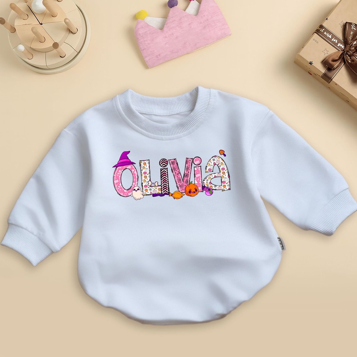 Personalized Halloween Baby Romper Sweatshirt Trendy Baby Bodysuit Custom Name Baby Outfit Spooky Fa 436