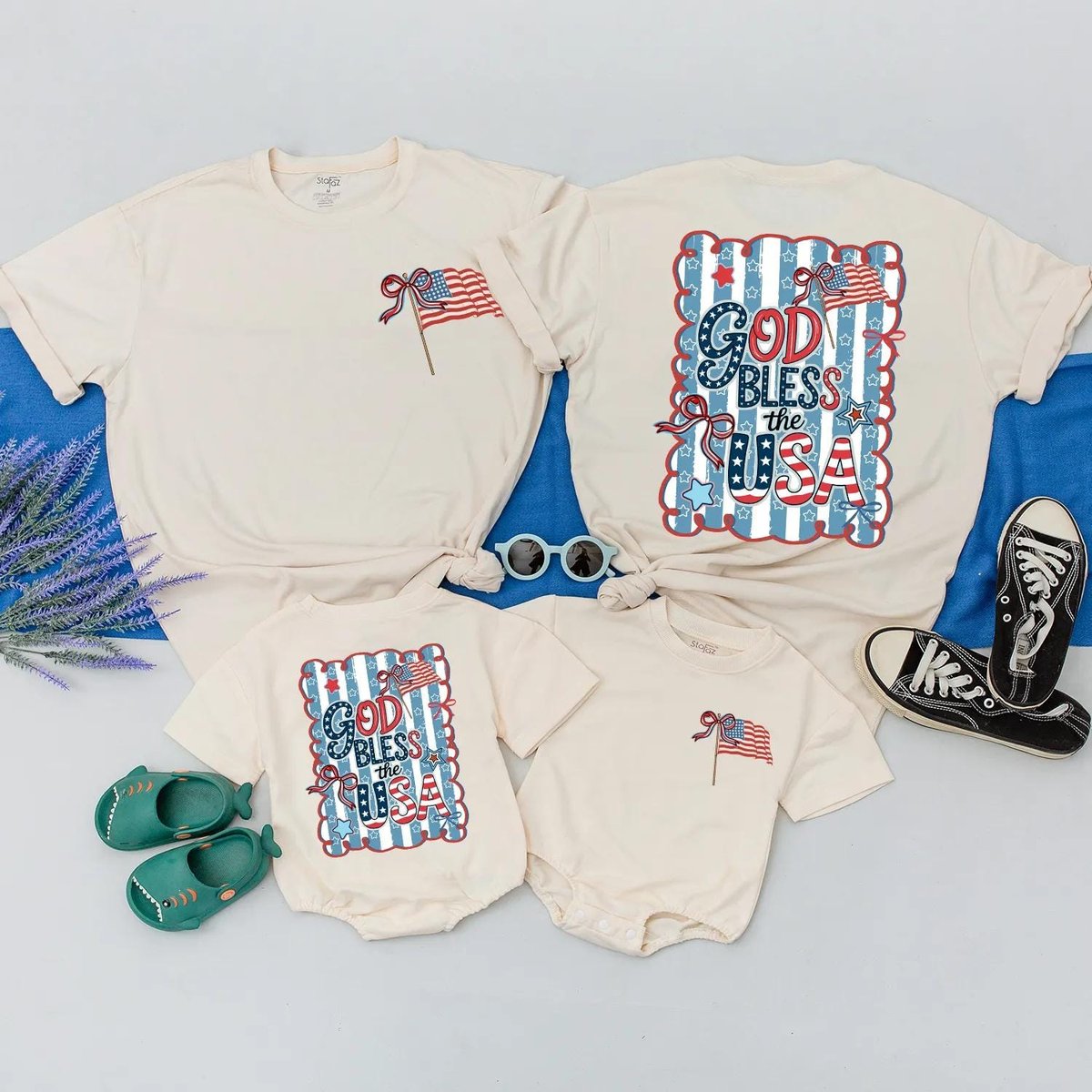 God Bless USA Matching Shirts for Mom and Baby 4th of July Family Outfits American Flag Toddler Girl 430
