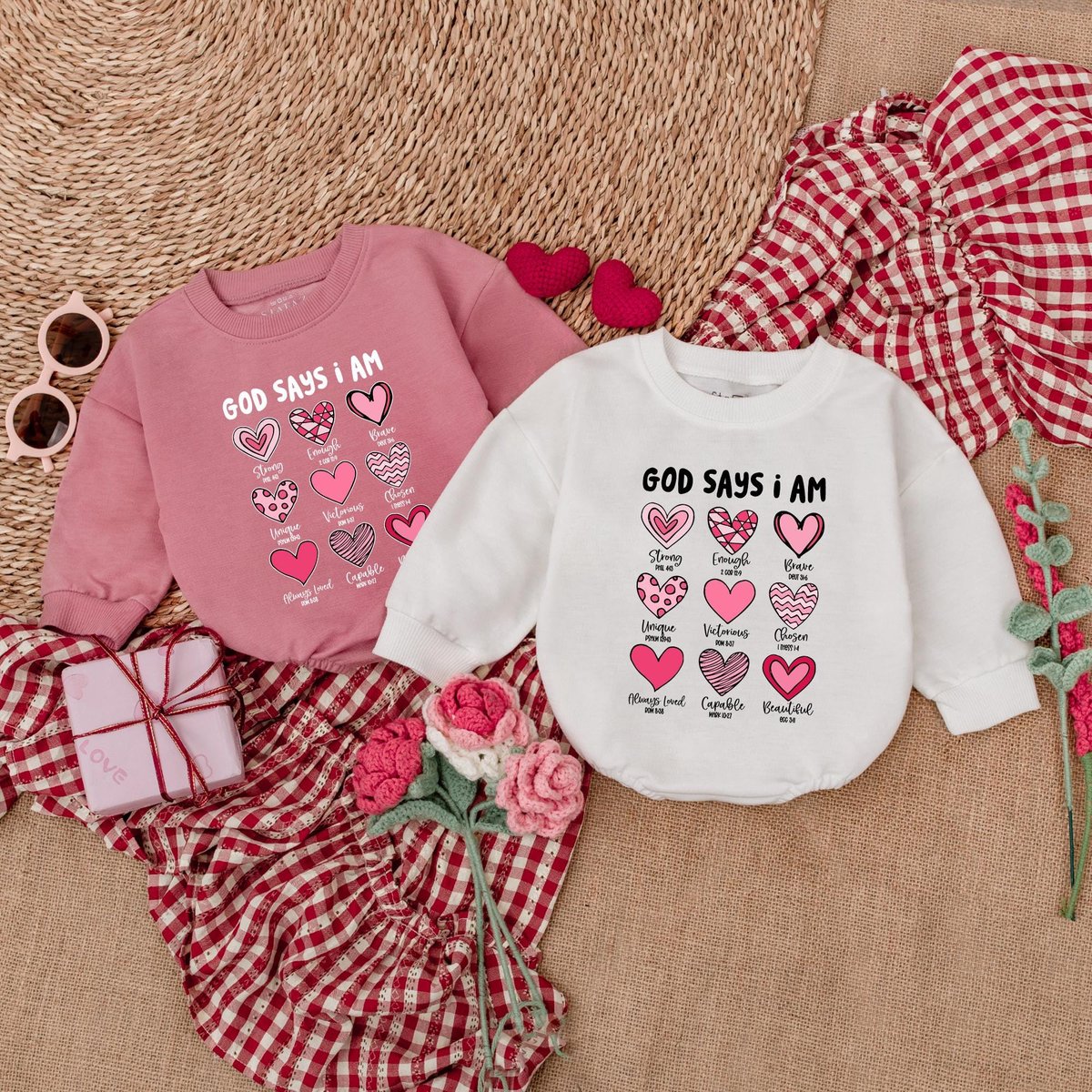 God Says I am Valentine Romper Faithful Valentines Baby Bodysuit Cute Hearts Bubble Romper My 1st Va 182