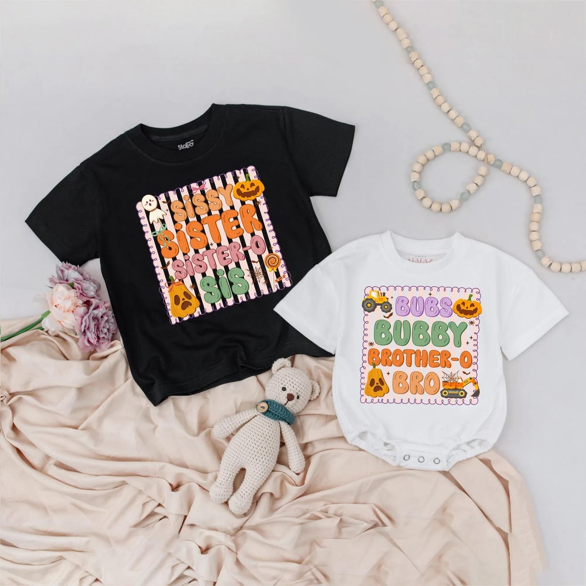 Sibling Halloween Shirt Cute Brother Sister Matching Halloween Outfit Personalized Baby Halloween Sh 433