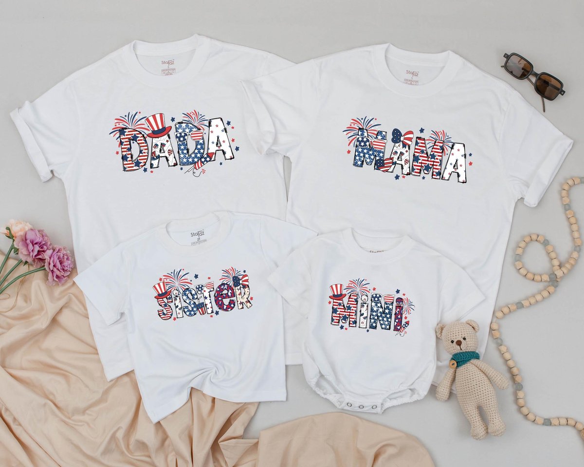 Personalized 4th of July Matching Family Shirts Patriotic USA Flag Outfits Red White Blue Family Tee 430