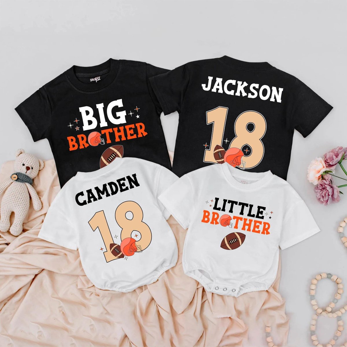 Personalized Big Brother and Little Brother Football Shirt Custom Name Sibling Outfit Matching Game 430