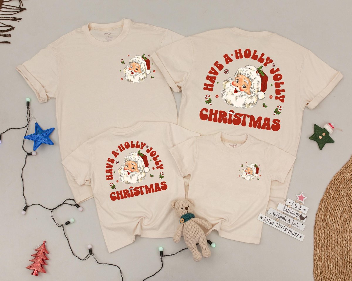 Have A Holly Jolly Christmas Shirt Christmas Crew T Shirt Retro Santa Claus Shirt Mom and baby Outfi 182