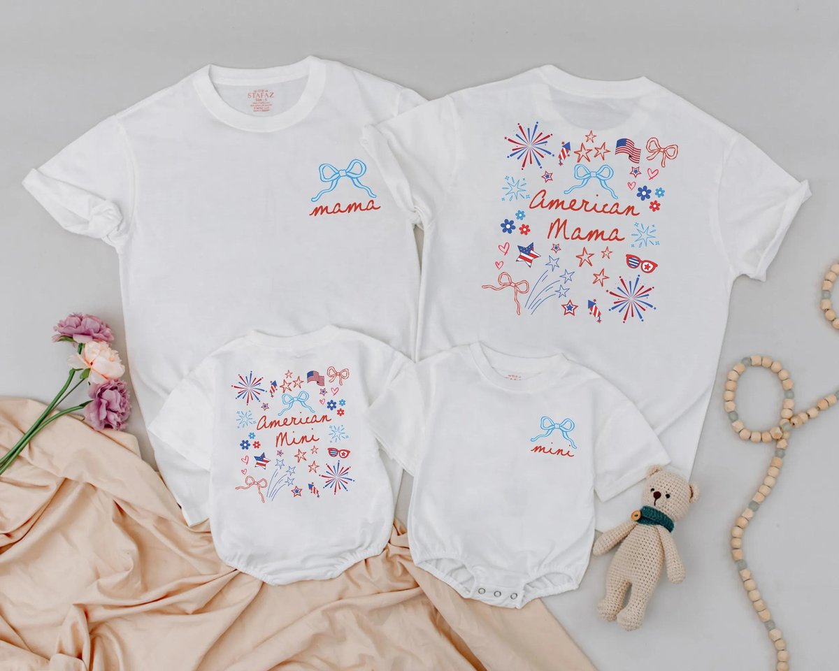 Matching American Mama and Mini 4th of July Outfit Patriotic Day Family Shirts Custom July Fourth Ba 430
