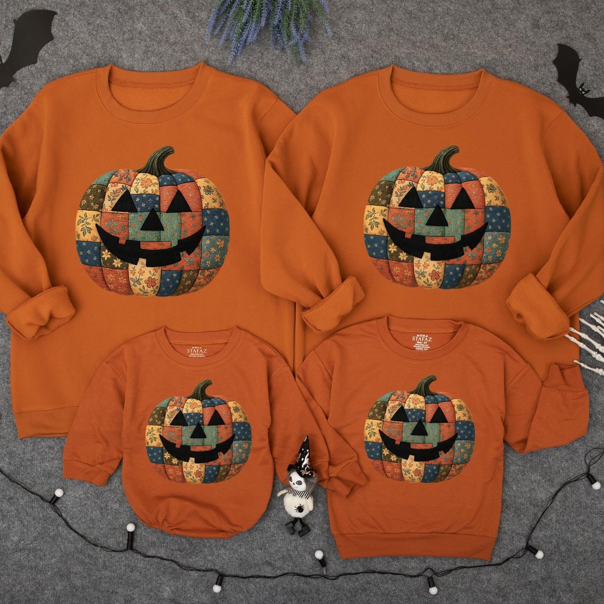 Retro Patchwork Halloween Pumpkin Sweatshirt Halloween Pumpkin Baby romper Spooky Season Sweater Hal 435