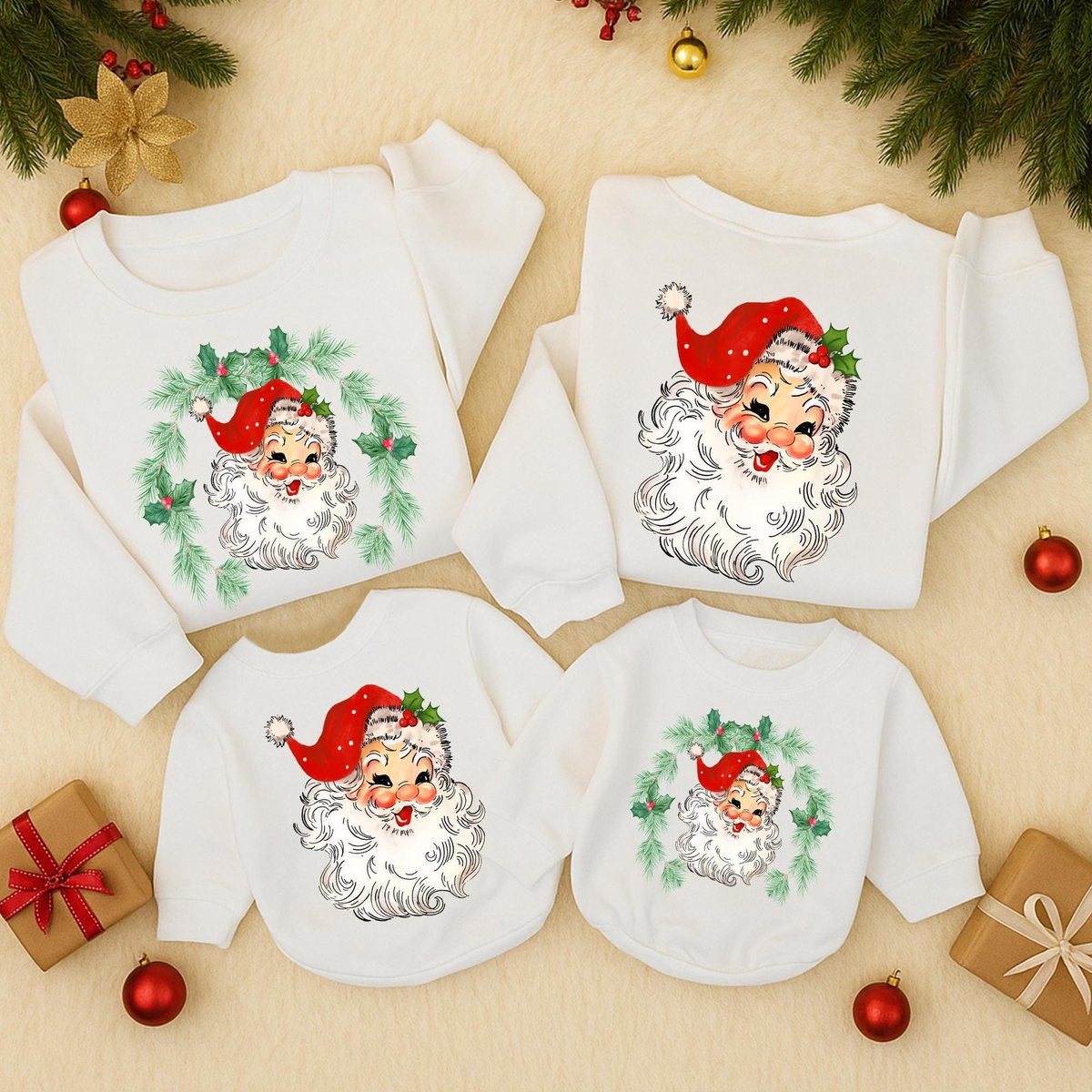 Retro Santa Christmas Sweatshirt Vintage Graphic Holiday Toddler Outfit 2 Sided sweater Christmas Mo 436