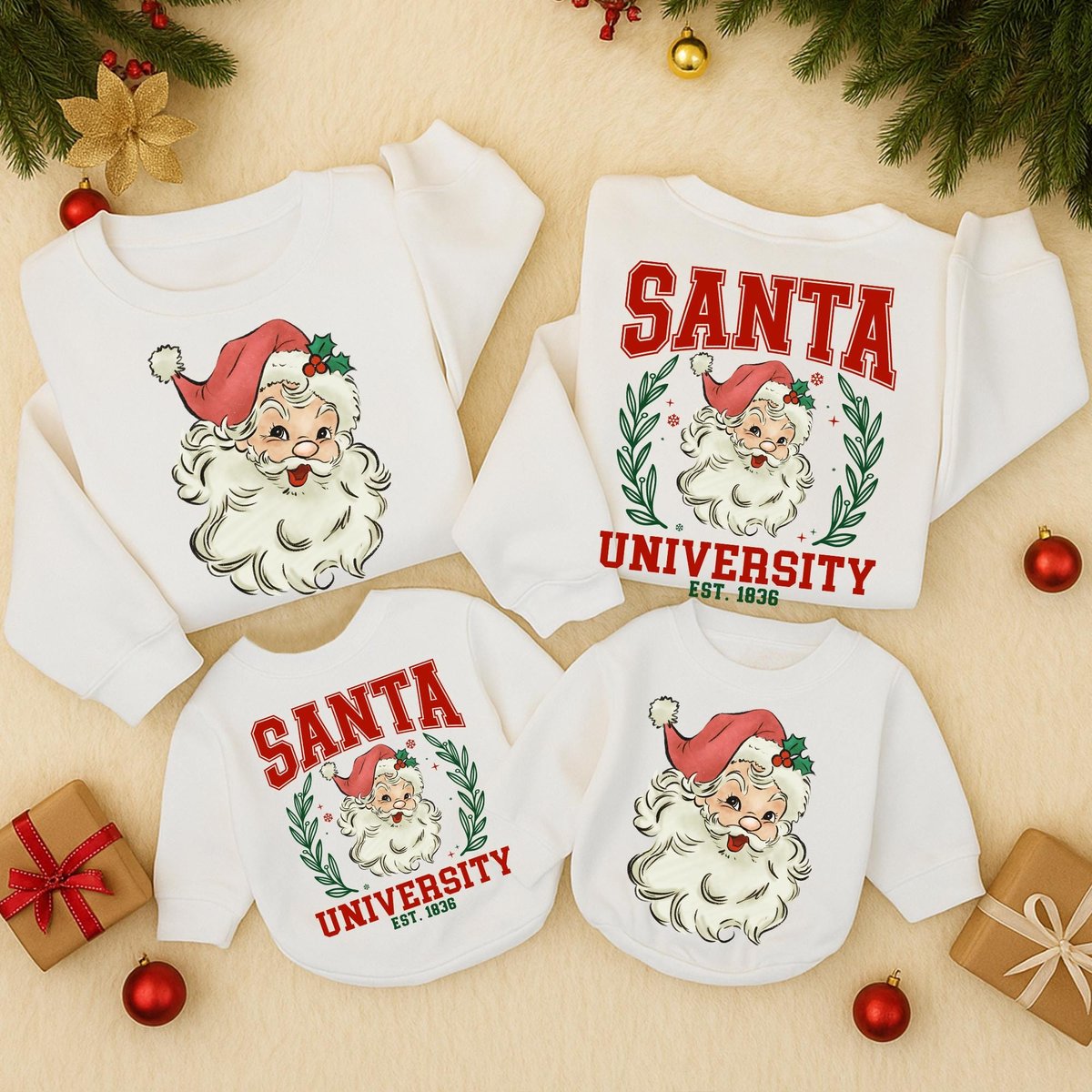 Retro Santa University Christmas Sweatshirt Vintage Graphic Holiday Toddler Outfit 2 Sided sweater S 436