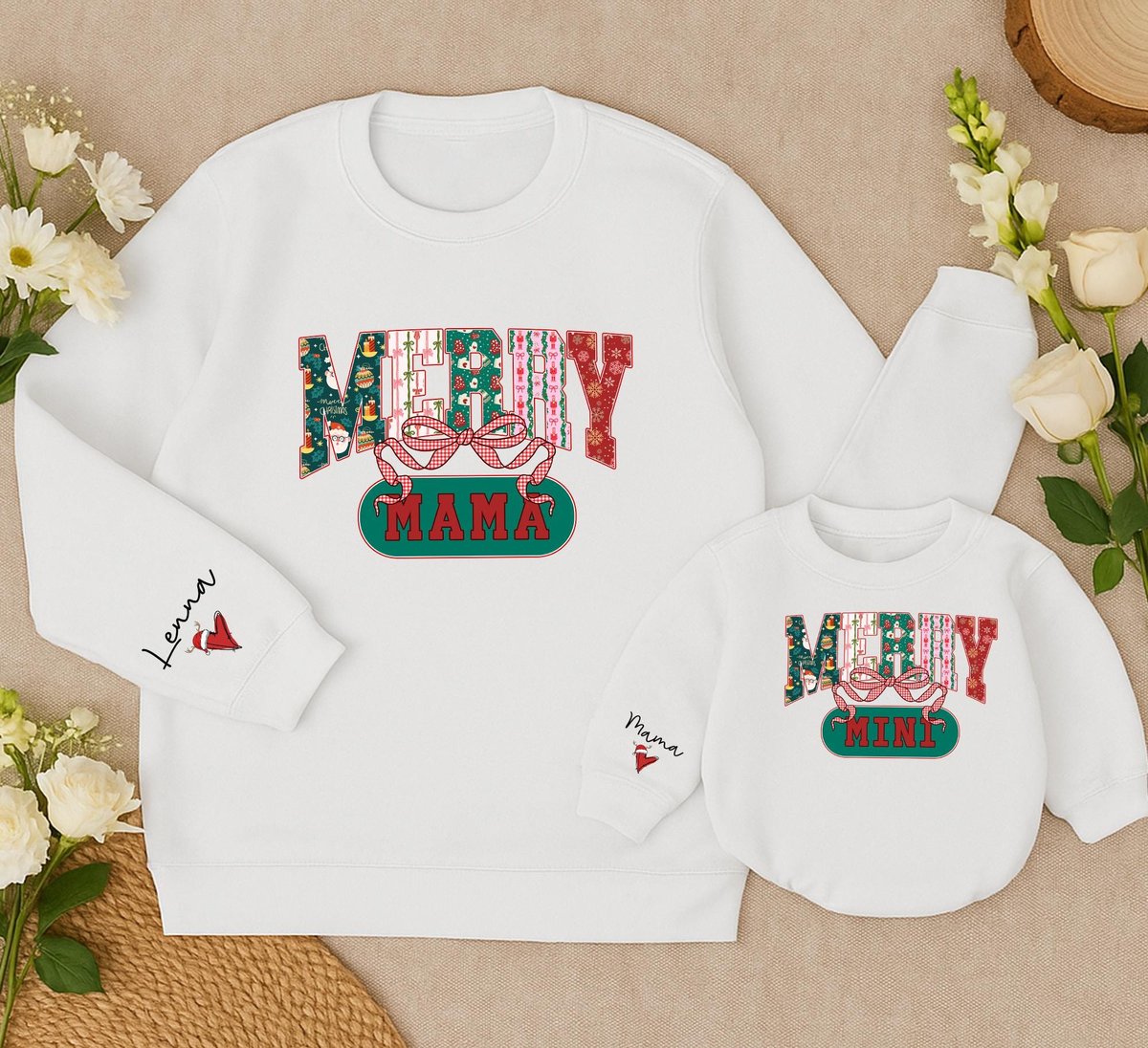 Retro Christmas Sweatshirt Mom And Baby Matching Family Sweater Daughter Kid Sweatshirt Merry mama m 436