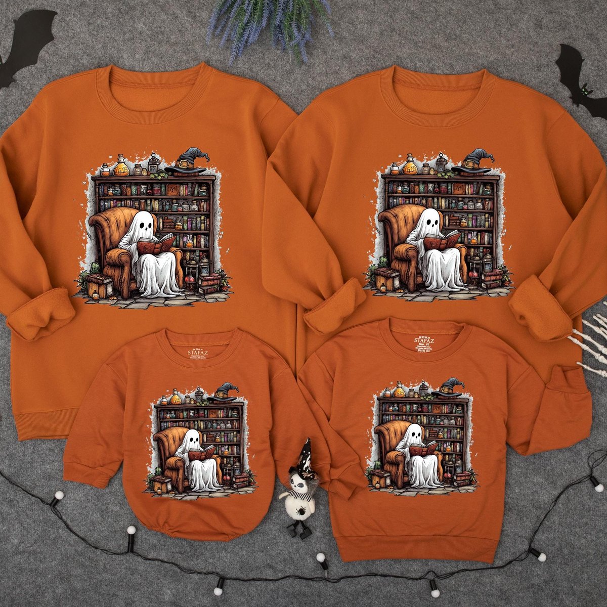Retro Ghost Reading Books Sweatshirt Librarian Ghost toddler Halloween Halloween Teacher Sweatshirt 434