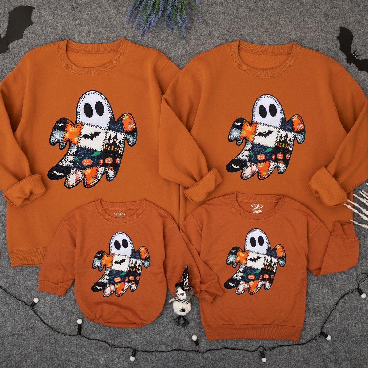 Retro Patchwork Halloween Ghost Sweatshirt Halloween boo Baby romper Spooky Season family Sweater Ha 435