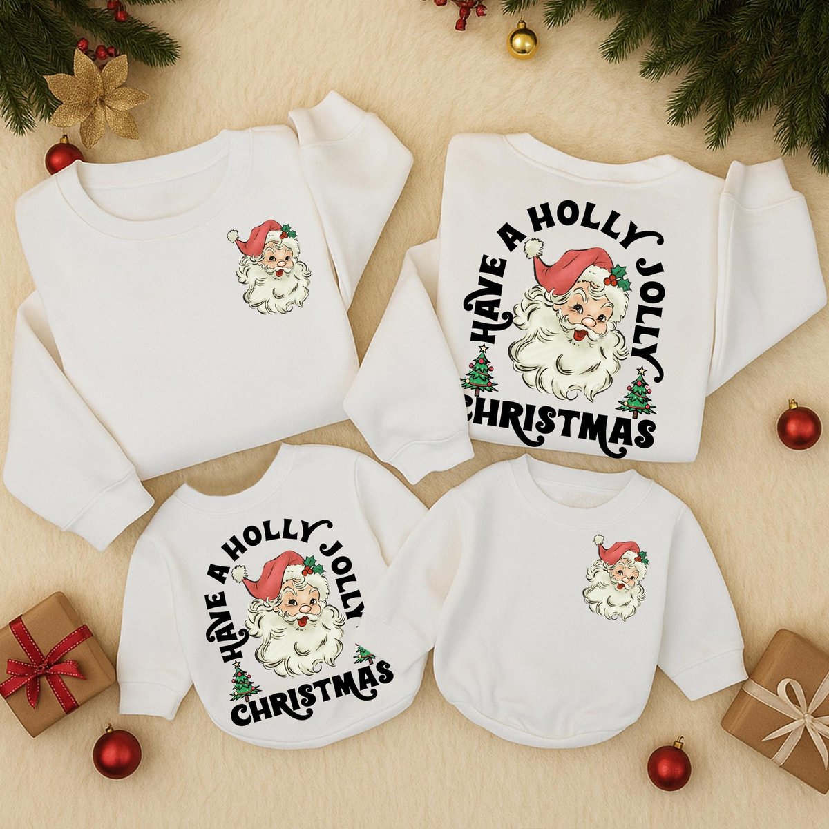 Retro Santa Christmas Sweatshirt Vintage Graphic Holiday Toddler Outfit 2 Sided sweater baby romper 436