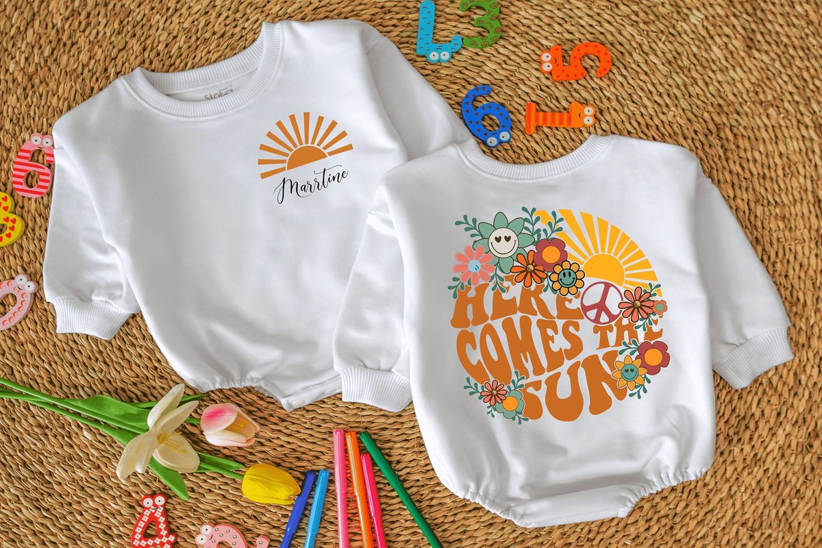 Beige Sun Romper Here Comes The Sun Romper Retro Romper Unisex Kids Body 100 Organic Cotton Oversize 153