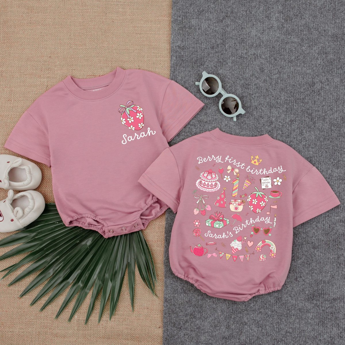 Berry First Birthday Baby Romper Personalized 1st Birthday Bodysuit Cute Strawberry Romper First Bir 434