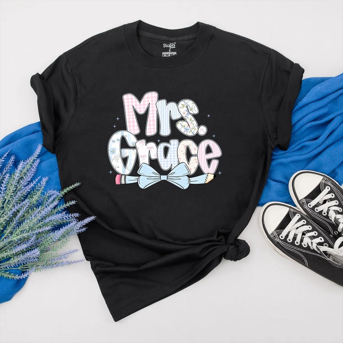 Personalized Teacher Shirt Cute Back to School Outfit Pencil Bow Tee for Teacher First Day of School 432
