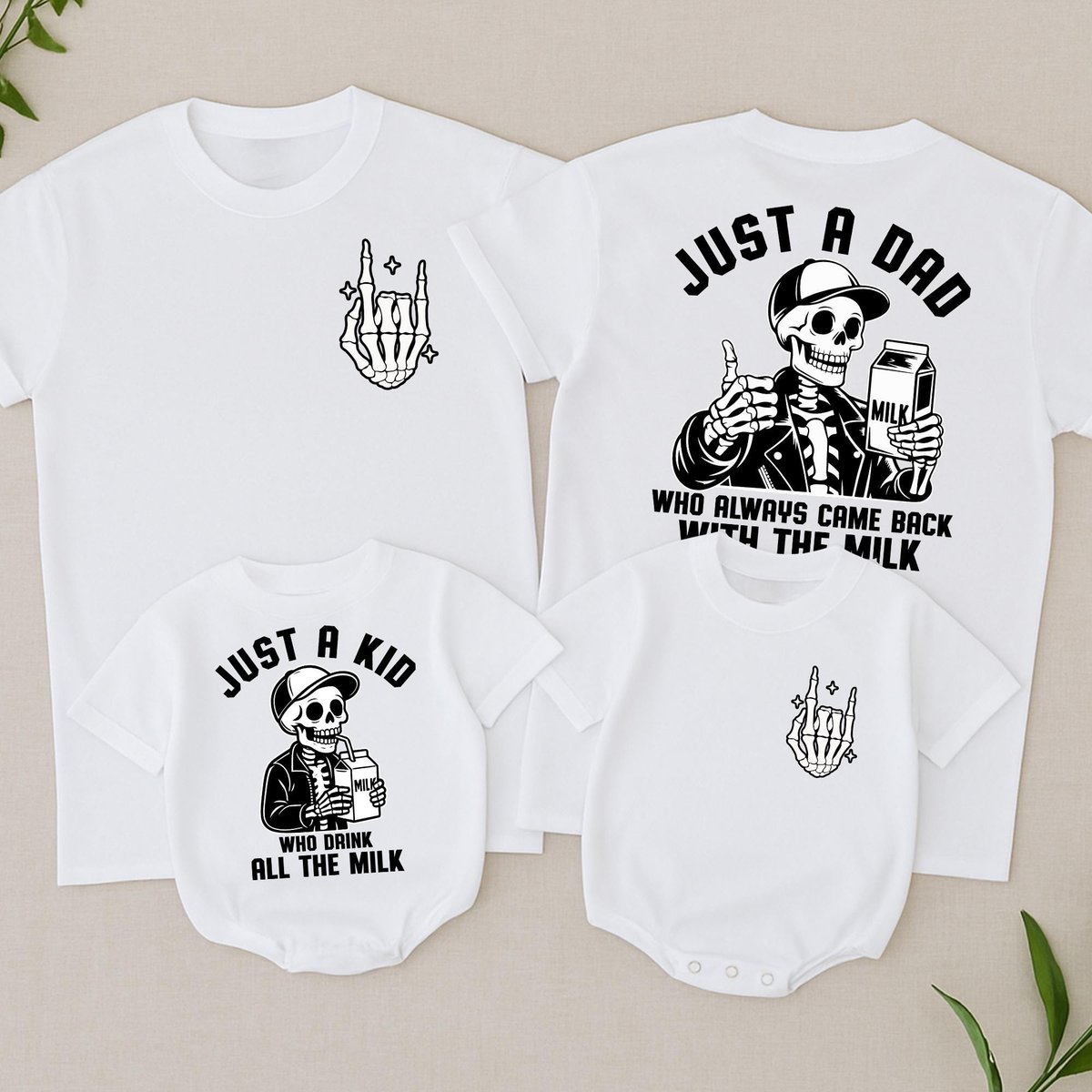 Just A Dad Who Always Came Back With The Milk T Shirt and Just a kid who drink all the milk Baby rom 435