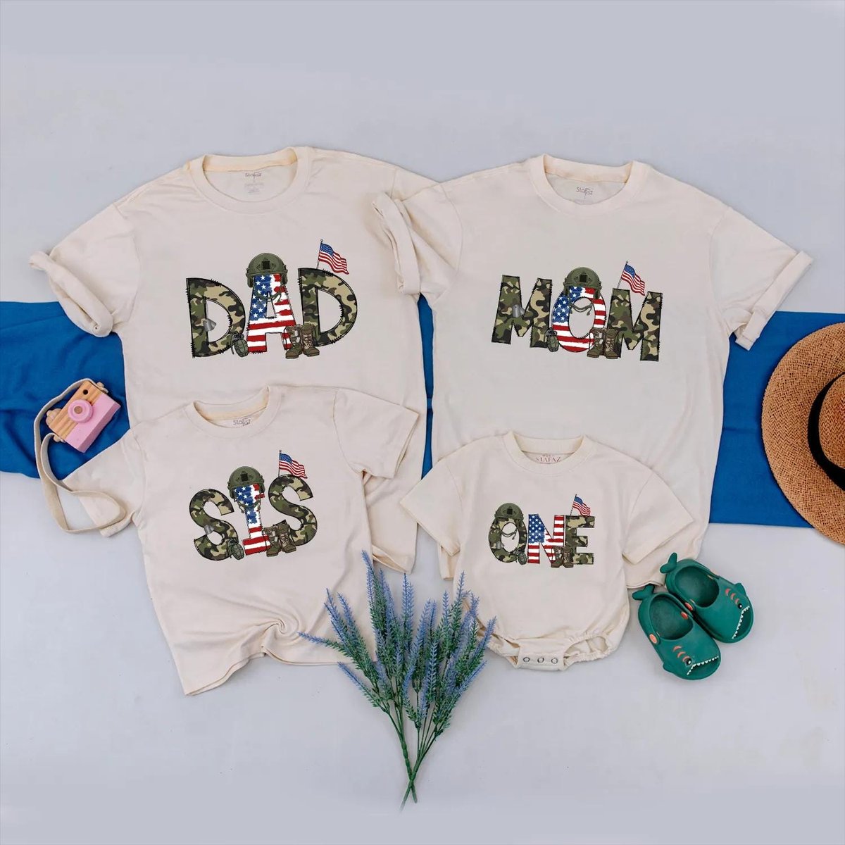 Personalized Military Family 4th of July Matching Shirts Patriotic Outfit for Dad Mom Baby Sis USA F 189