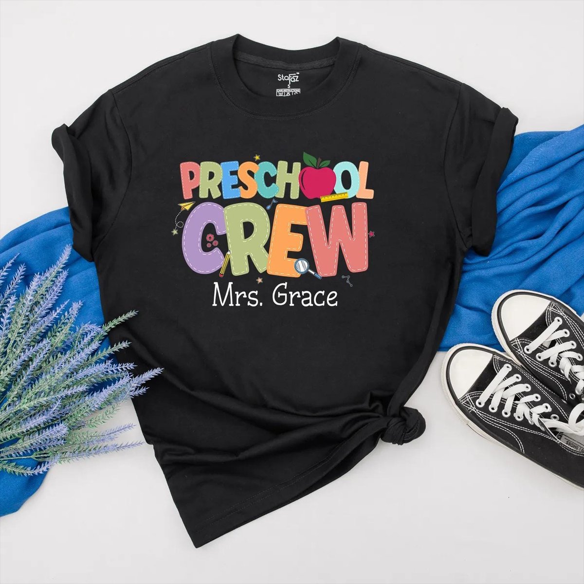 Personalized Preschool Crew Shirt Preppy Apple Tee Custom Teacher Shirt Cute Teacher Outfit Teacher 432