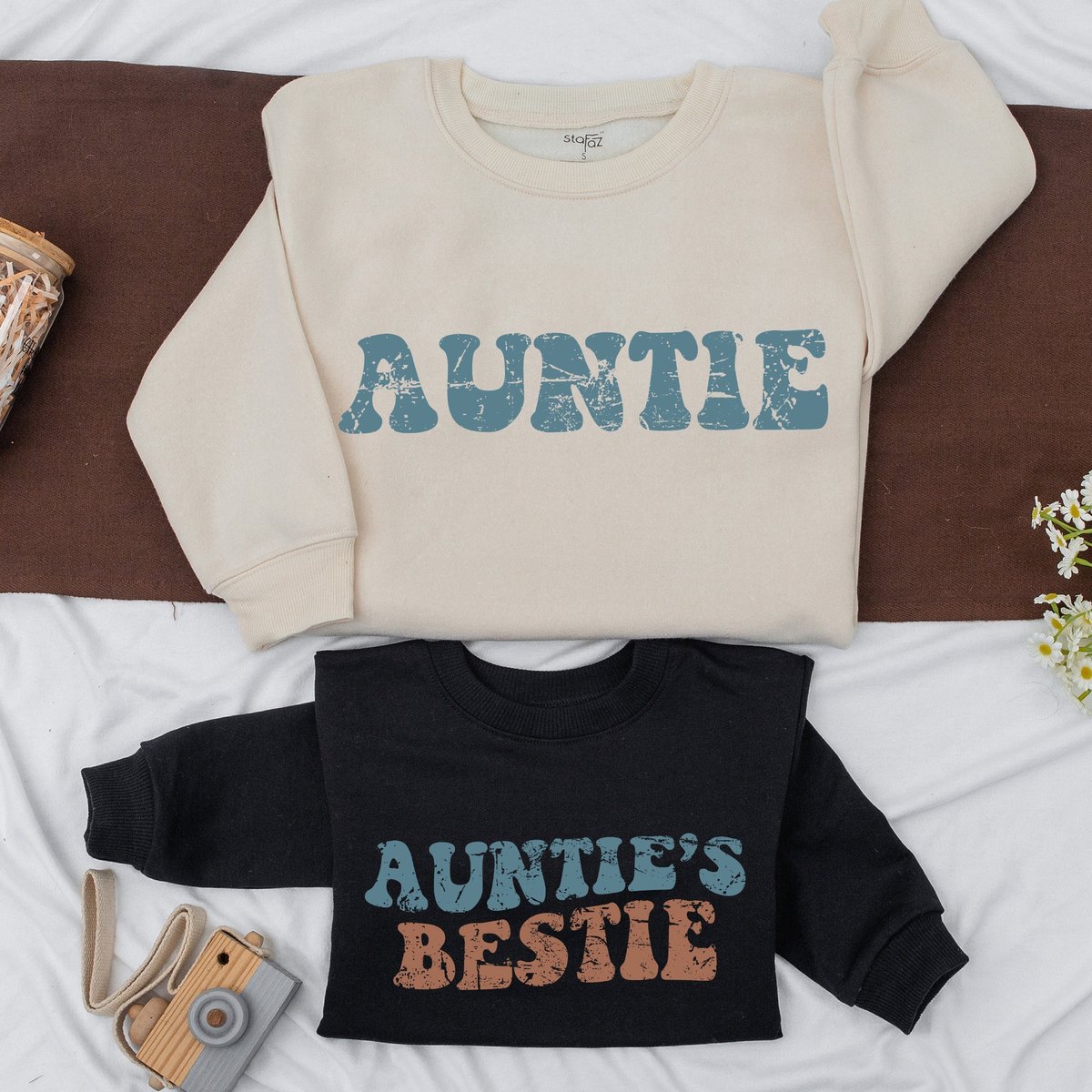 Personalized Retro Auntie And Autie’s Bestie Sweatshirt Custom Matching Family Sweatshirt baby romp 160