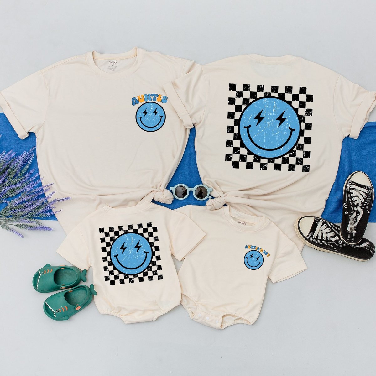 Personalized Auntie And Auntie’s Boy Sweatshirts Retro Smile Face Shirt Baby Shower Gift Smile Swea 173