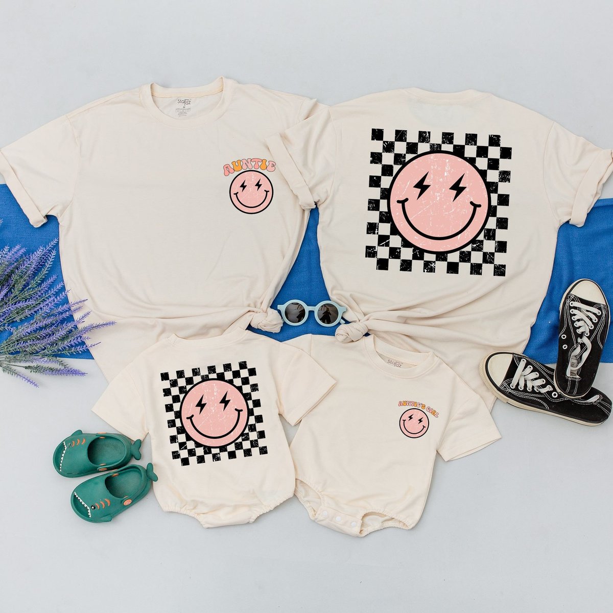 Personalized Auntie And Auntie’s Girl Sweatshirts Retro Smile Face Shirt Baby Shower Gift Smile Swe 174
