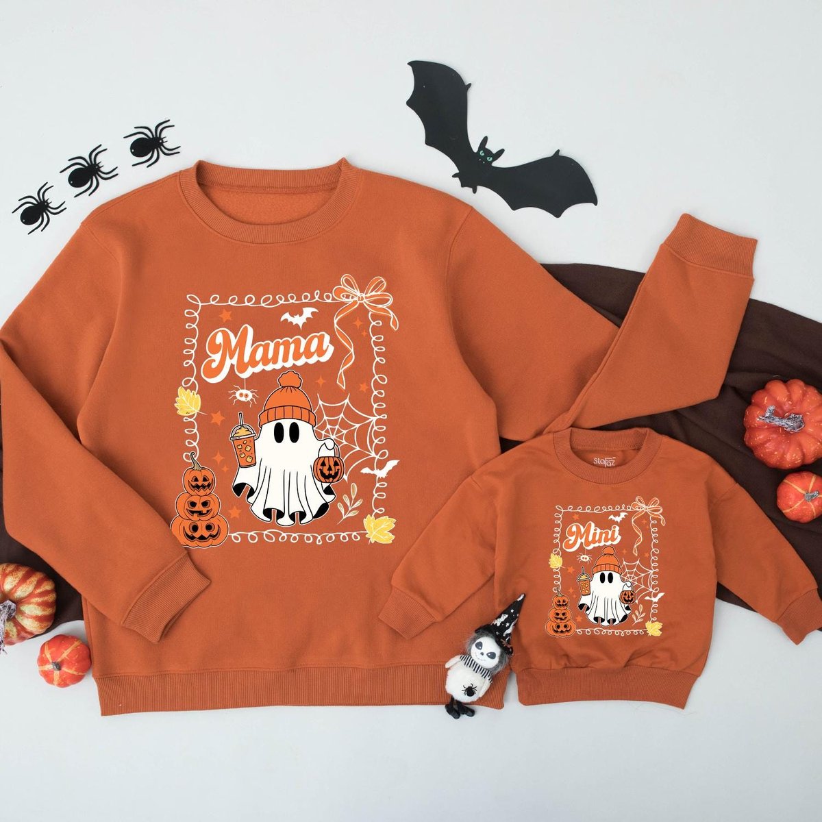 Mama and Mini Halloween Matching Sweatshirts Fall Mommy and Me Sweaters Retro Halloween Boo Hallowee 436