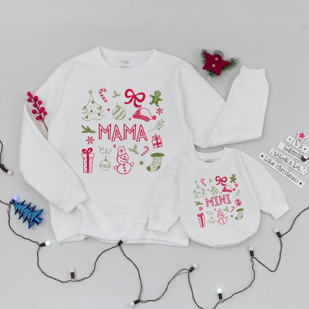 Mama and Mini Matching Christmas Sweatshirts Custom Mommy and Me Holiday Outfit Babys First Christma 436
