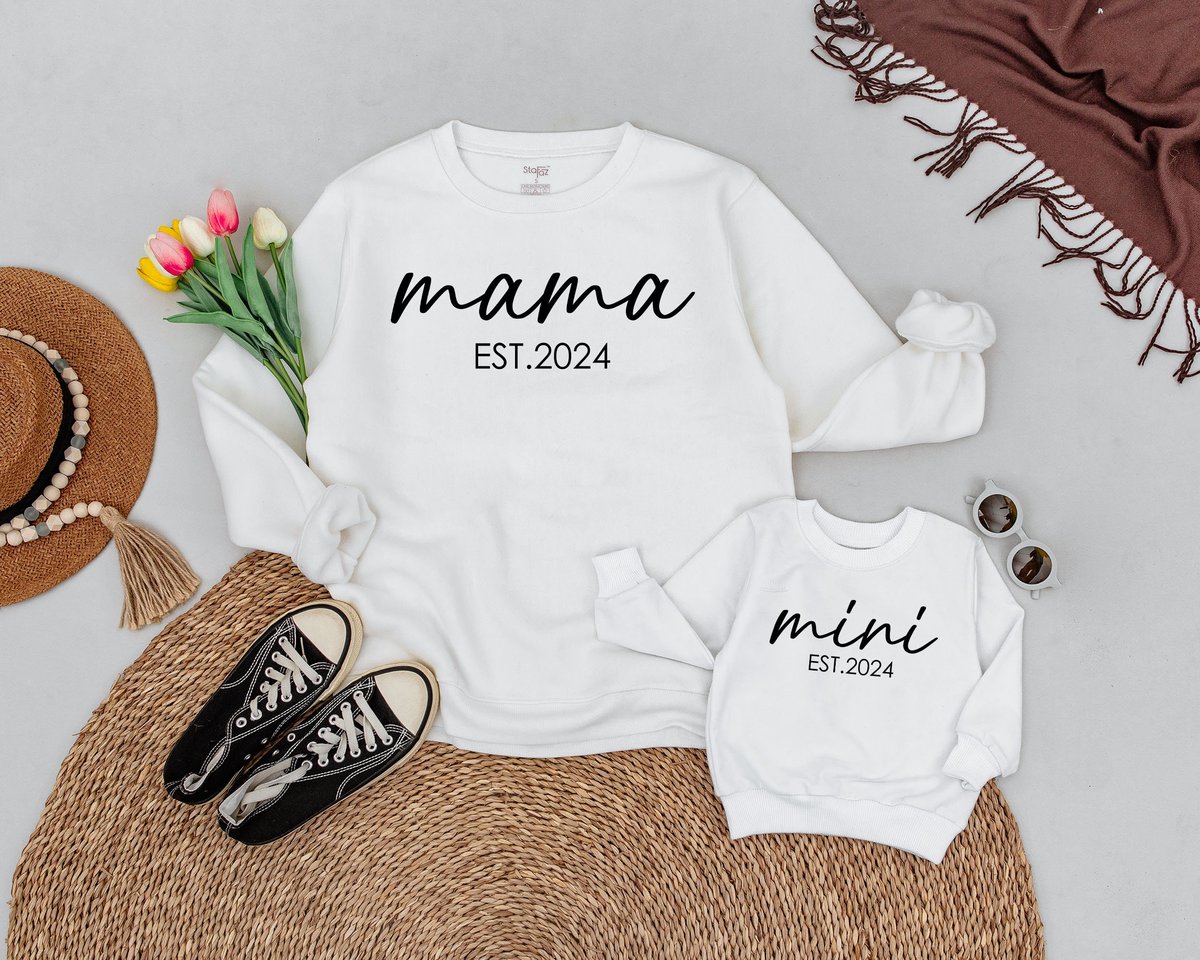 Mama Mini Est 2024 Sweatshirts Mom And Baby Matching Outfit Fall Sweatshirts Mommy and Me Sweaters F 171