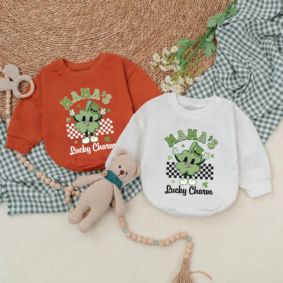 Mama’s Lucky Charm Baby Romper First Patrick’s Day Shamrock Romper Natural Baby Shower Gift 1st Pa