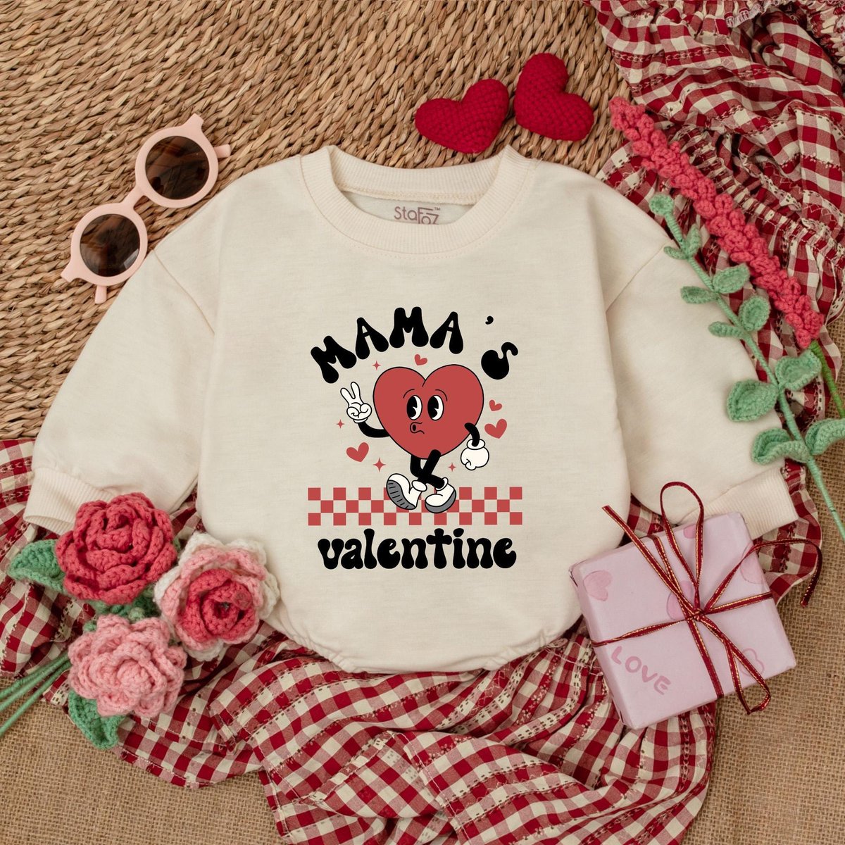 Mama’s Valentine Baby Outfit Sweatshirt Bubble Romper Baby Boy Clothes Valentine For Baby Ba