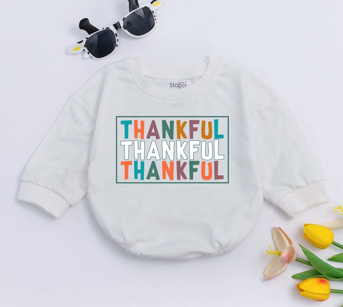 Thankful Baby Romper Thanksgiving Outfit Fall Baby Shower Gift Thanksgiving Baby Announcement Holida 151