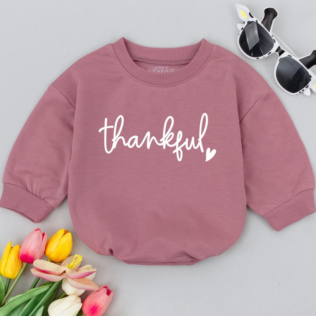 Thankful Baby Romper Thanksgiving Baby Outfit Pumpkin Baby Romper Baby Sweatshirt Romper First Thank 156