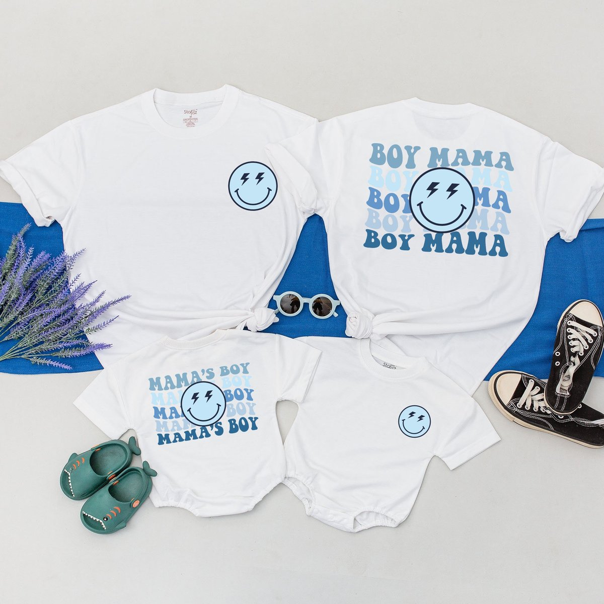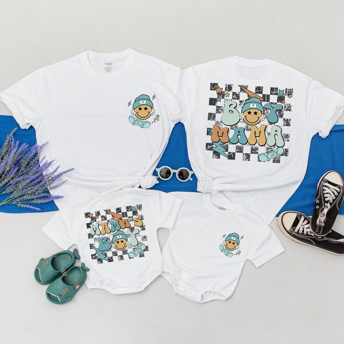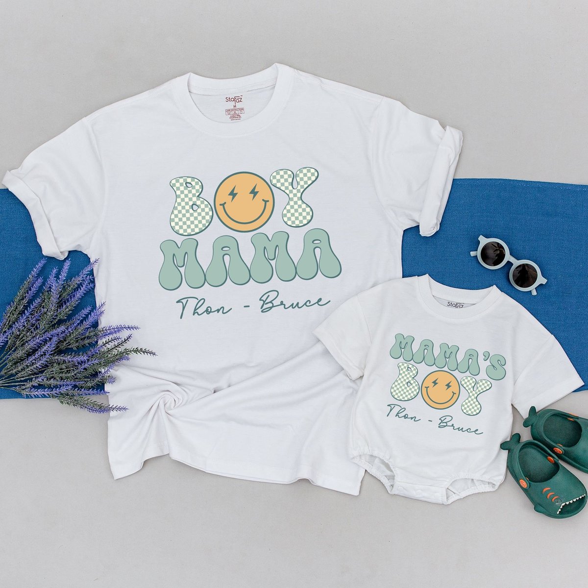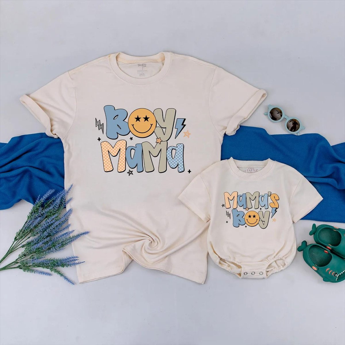 Mamas Boy and Boy Mama Matching Shirts Cute Retro Mommy and Son Outfits Custom Mother with Son Shirt 432