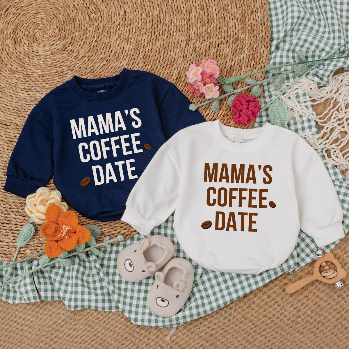 Mamas Coffee Date Baby Bubble Romper Little Bean Baby Bodysuit Long Sleeve Baby Outfit Minimalist Ba 189