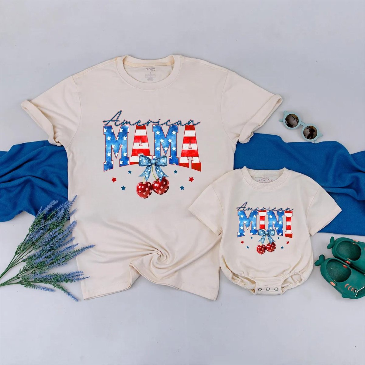 Matching American Mama and Mini Shirt 4th of July Mommy and Me Outfit Patriotic Cherry Shirt for Mom 430