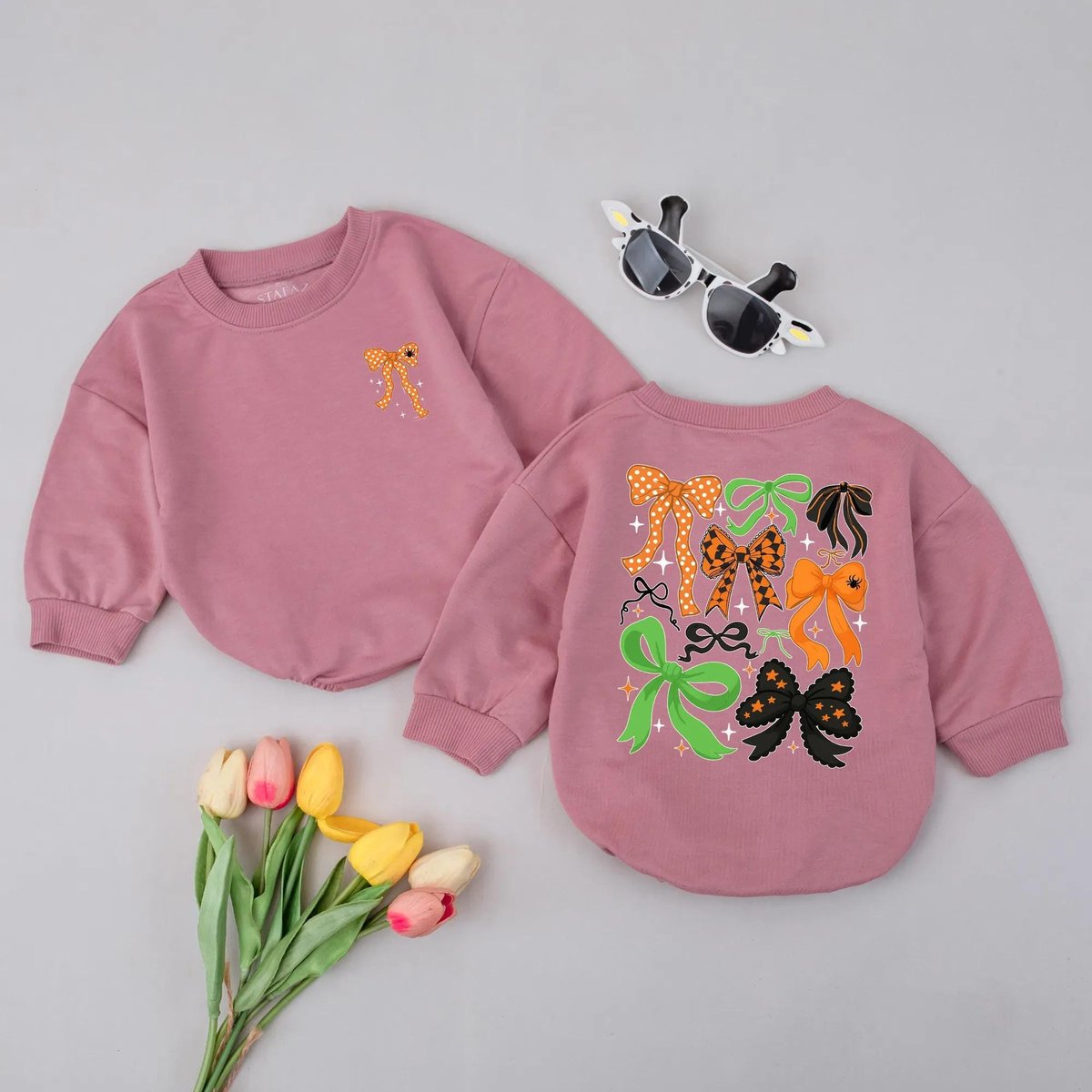 Retro Halloween Bow Bubble Romper Spooky Season Baby Outfit with Bows Cute Halloween Baby Clothes fo 434