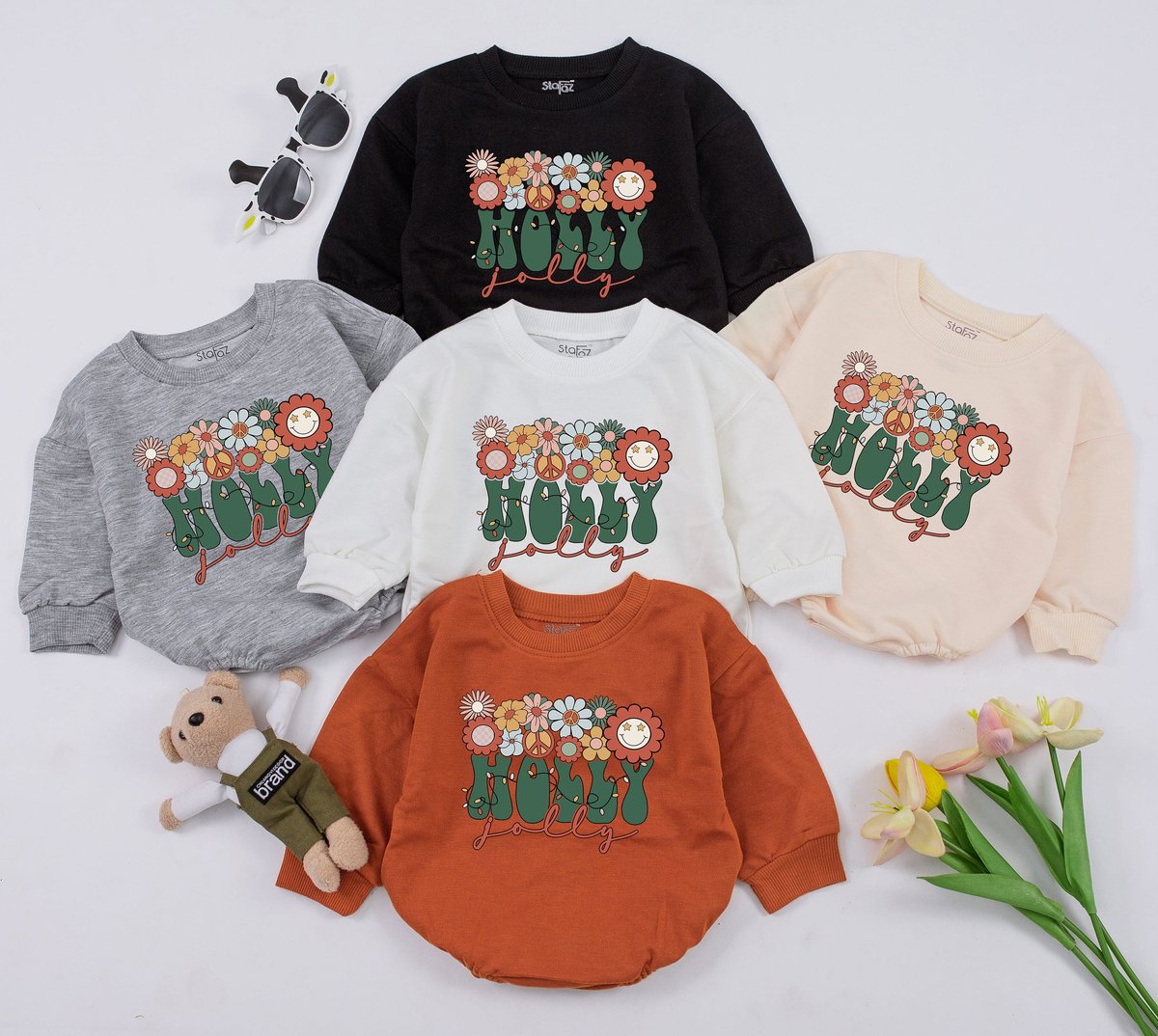 Retro Holly Jolly Christmas Baby Outfit Bubble Romper 1st Christmas Merry Christmas Vibes Baby Showe 154