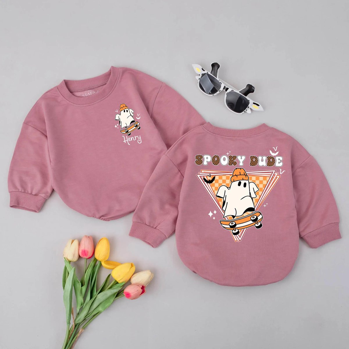Personalized Spooky Dude Halloween Romper Skateboard Ghost Baby Outfit Halloween Baby Boy Bodysuit F 435