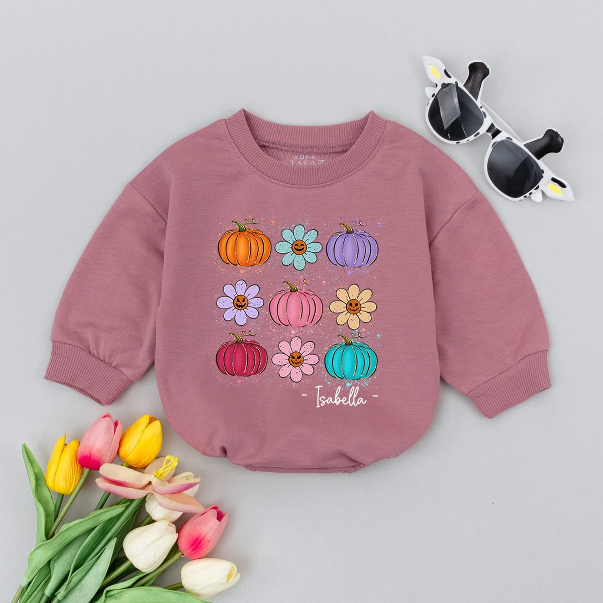 Personalized Pumpkin Season Baby Romper Retro Cute Vintage infant coming home outfit baby shower gif 172