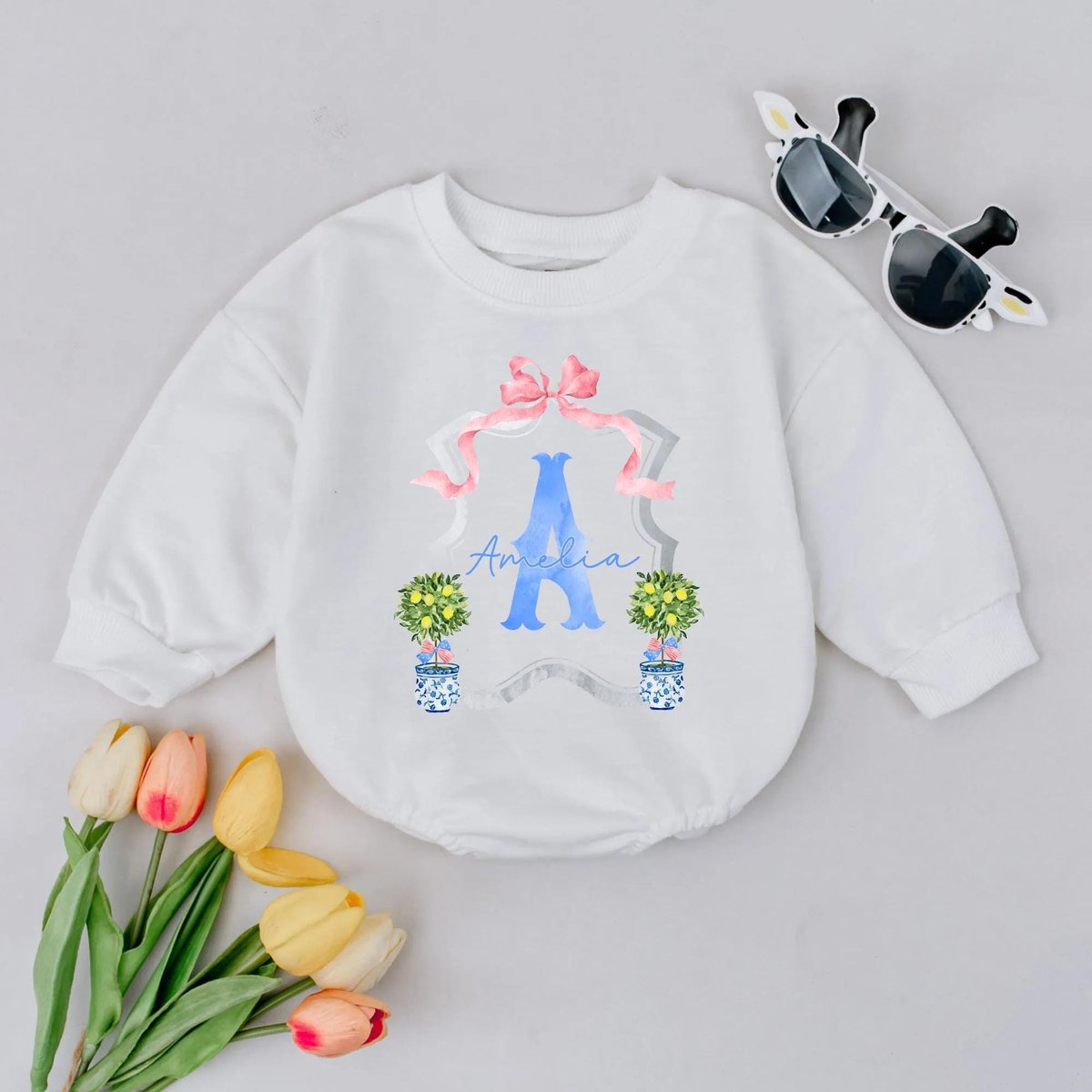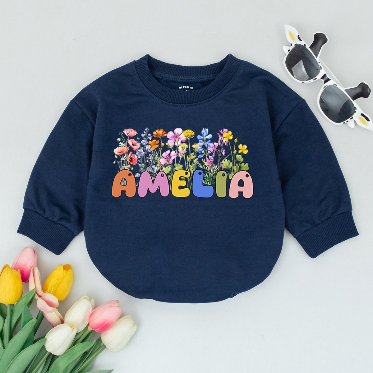 Personalized Name Bubble Baby Romper vintage floral infant coming home outfit baby shower gift Littl 172