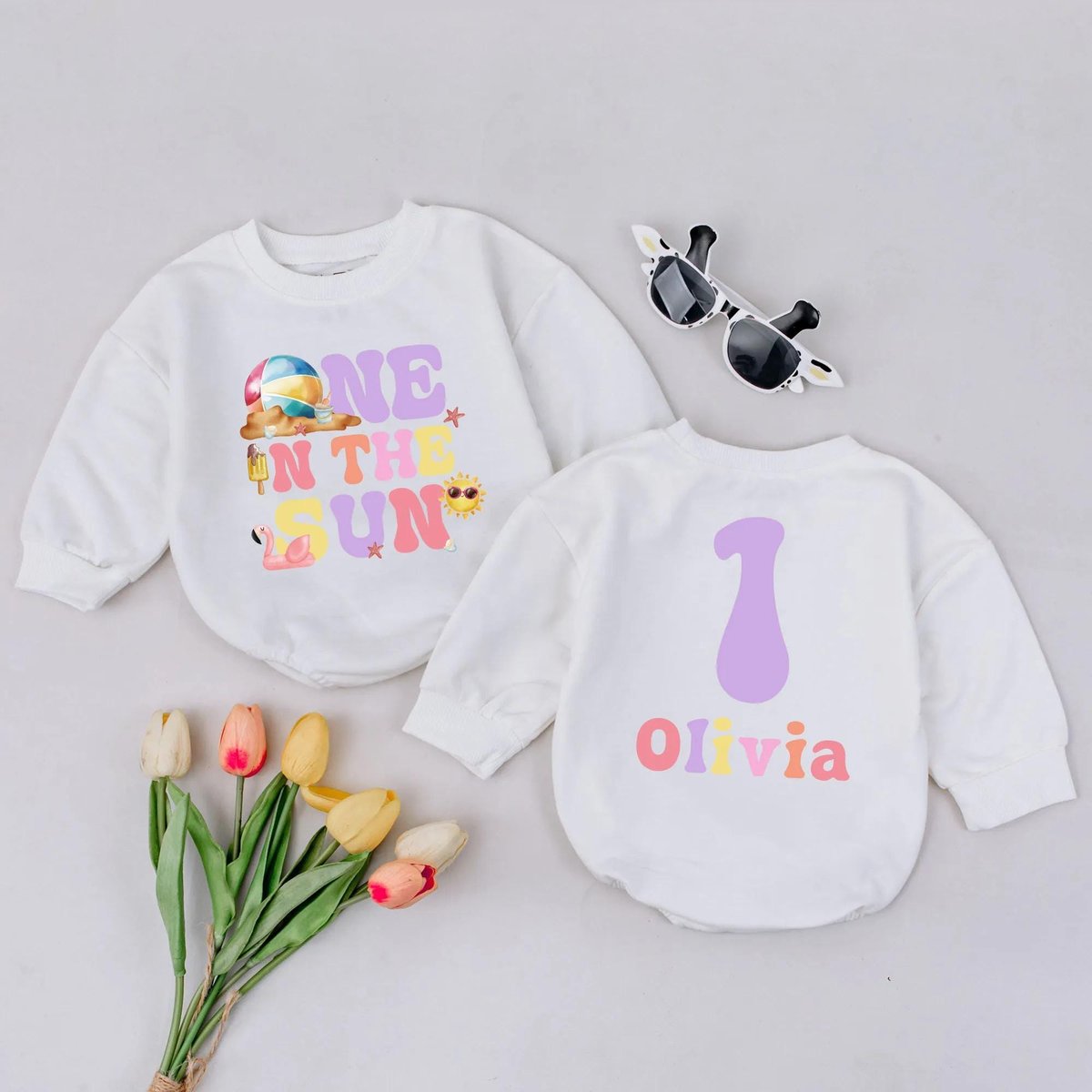 Personalized One in the Sun Bubble Romper First Birthday Outfit Summer First Trip Baby Clothes Gende 431