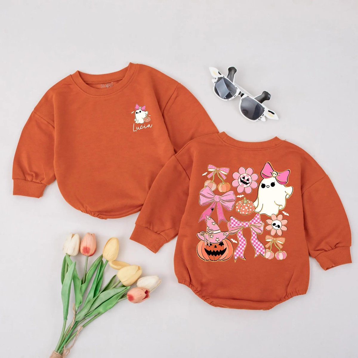 Personalized Pastel Halloween Baby Bubble Romper Cute Ghost Baby Girl Outfit Spooky Autumn Baby Clot 435