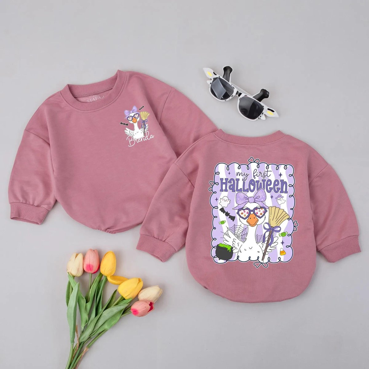 Personalized My First Halloween Bubble Romper Custom Name Spooky Goose Bodysuit Cute Baby Girl Hallo 435