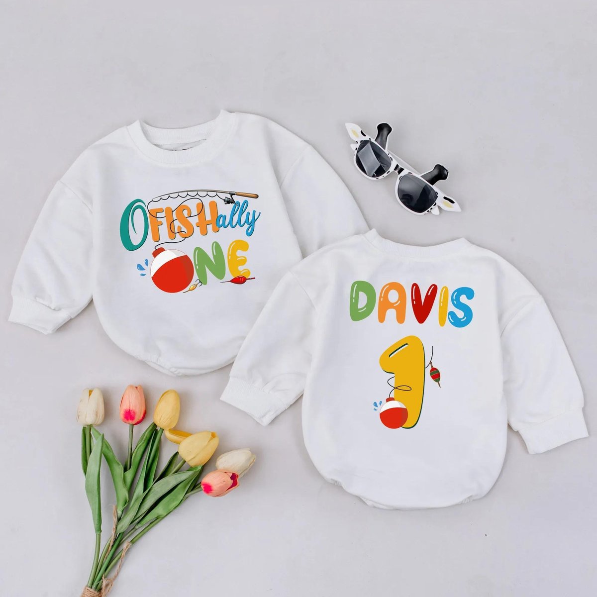 Ofishally One Birthday Romper Fishing Birthday Outfit Personalized Baby Romper 1st Birthday Gift Boy 190