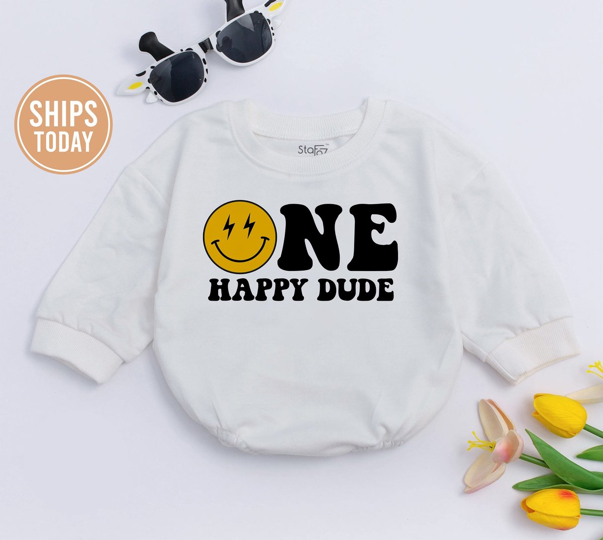 One Happy Dude Baby Romper First Birthday Gift 1st Birthday One Cool Dude Smiley Face Birthday Outfi 149