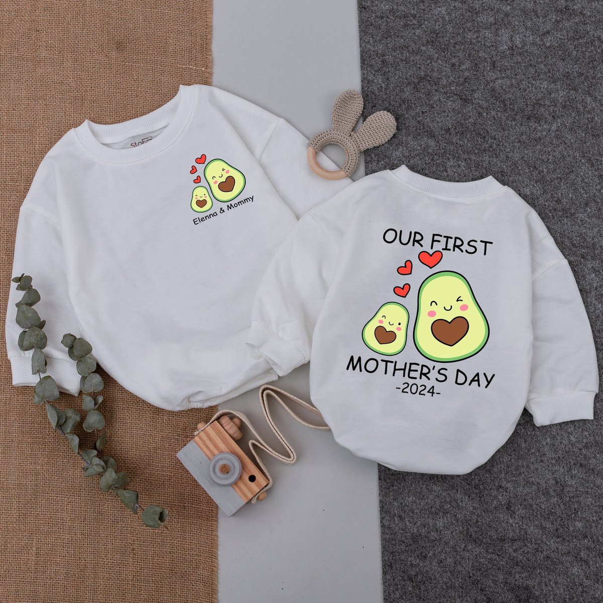 Our First Mother’s Day Avocado Oversized Baby Romper Personalized Mother’s Day Baby Bodysuit Gift 170