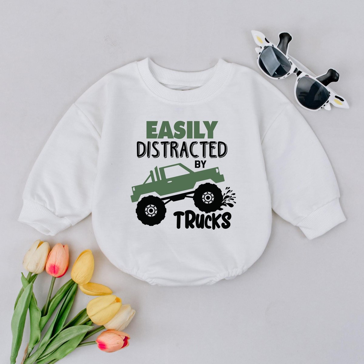 Monster truck baby shirt Toddler truck outfit Boys truck sweatshirt Easily distracted by trucks Baby 429