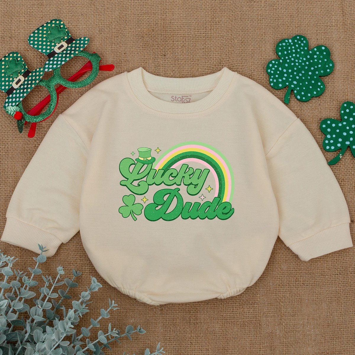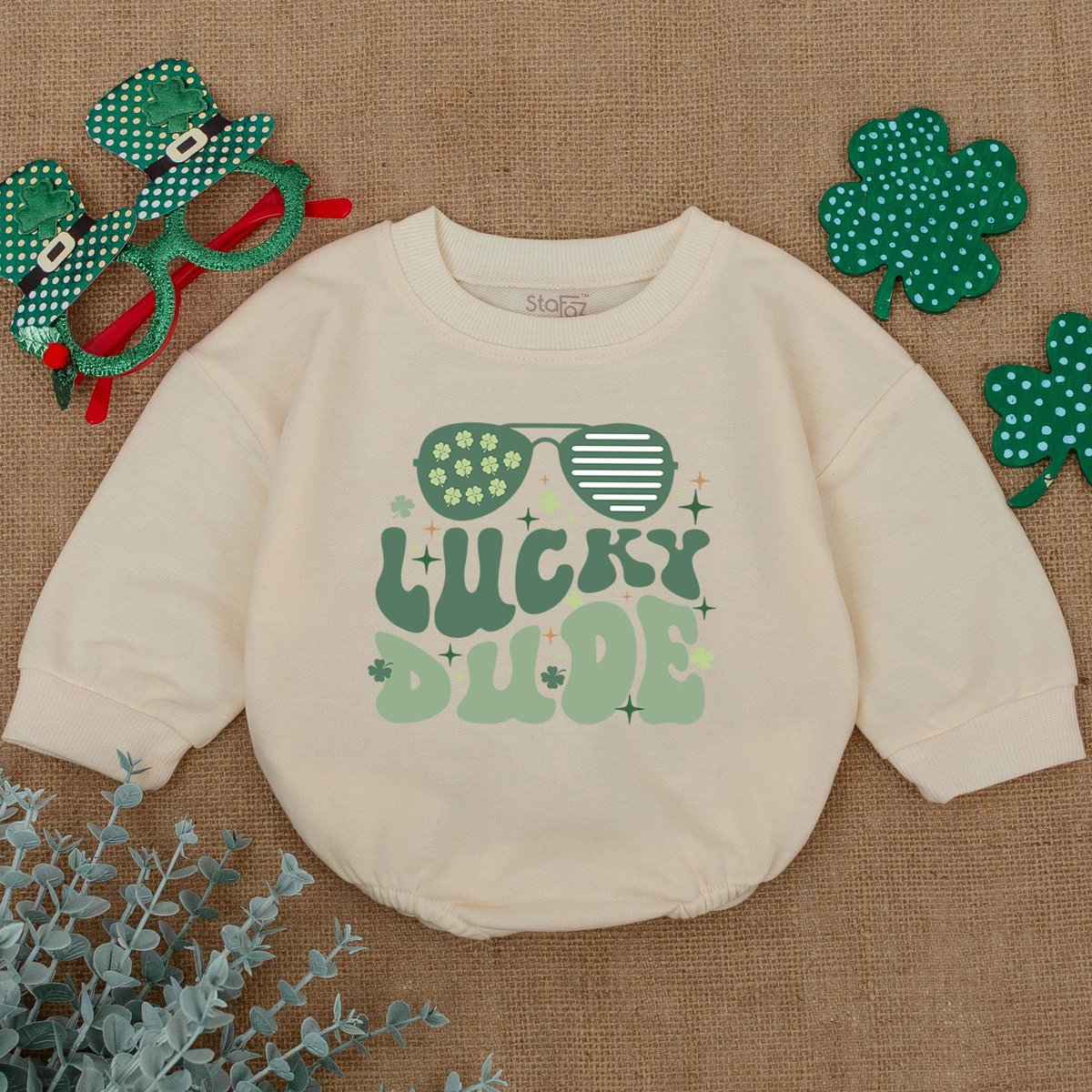 Luky Dude Shamrock Baby Romper Clover Patrick Baby Bodysuit Newborn Saint Patrick’s Day Clover St P 163
