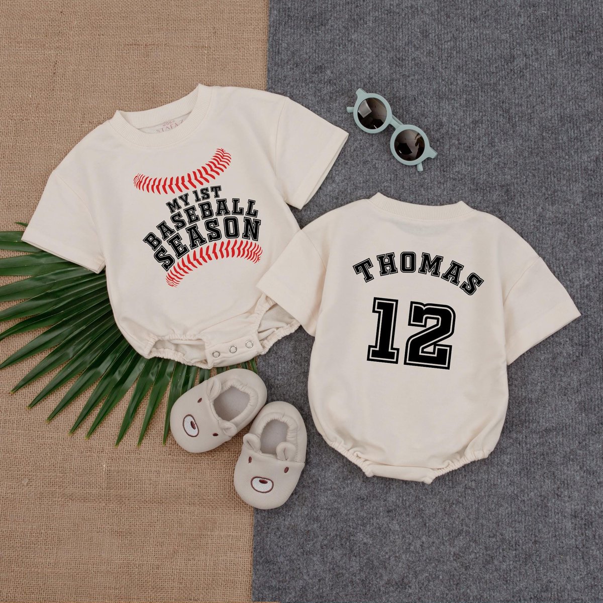 My 1st Baseball Season Bubble RomperBaby Boy Game Day OutfitInfant Baseball T Shirt RomperFirst Base 190