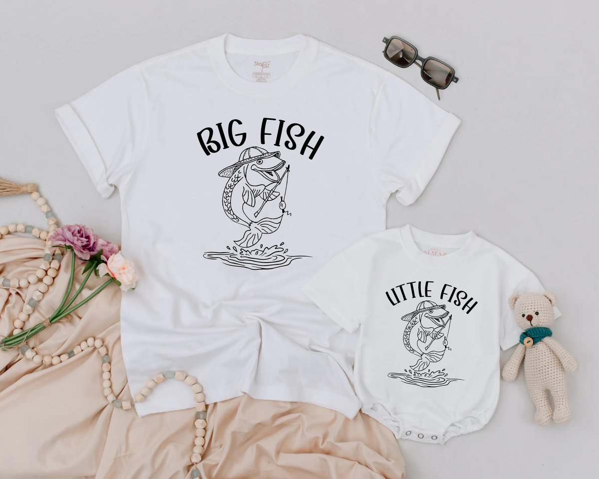 Big Fish Little Fish Matching Shirt Daddy and Me Fishing Outfit Father Son Fishing Shirt Baby Bubble 189