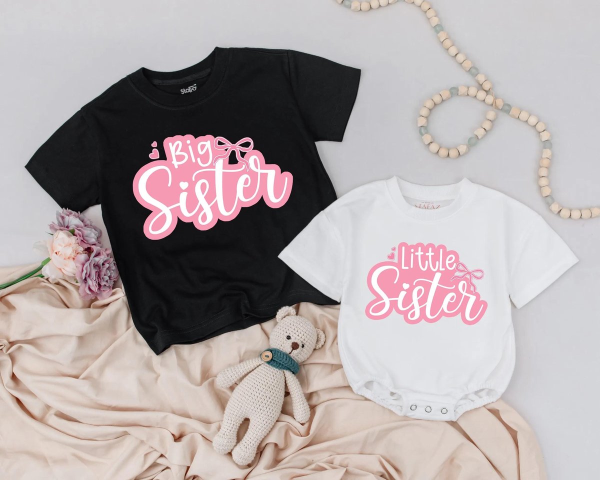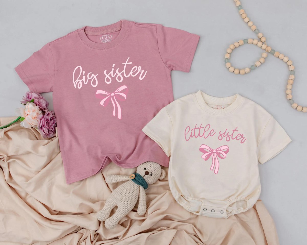 Big Sister Little Sister Matching Outfits Bow Sibling Shirts Baby Girl Clothes Toddler Sister Outfit 189